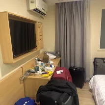 Room was fairly clean and was cleaned everyday. Water was provided too. Have to walk quite a bit to get to trains but there was many food option around.