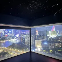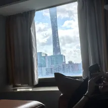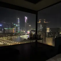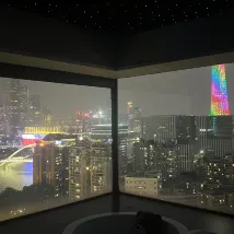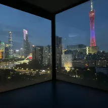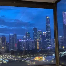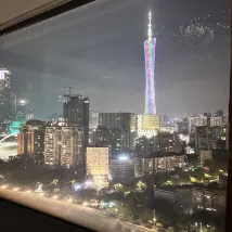 In der Nähe des Canton Tower ist die Aussicht vom Zimmer aus sehr gut, aber die Außenseite des Glases ist etwas schmutzig.