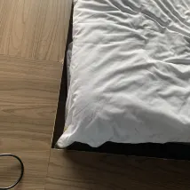 Die Dekoration im Zimmer war an vielen Stellen beschädigt, teilweise konnte sogar getreten werden. Außerdem gab es eine Lücke zwischen dem Bett und dem Holzbrett, sodass man versehentlich darauf treten und fallen konnte!