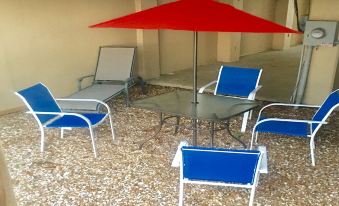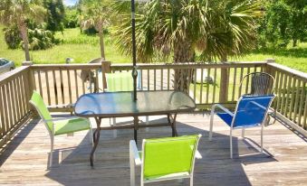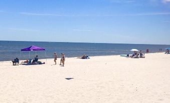 Facility had plently of parking and easy to find. The porch had a picnic table with an umbrella with a view of the beach. Would stay again,