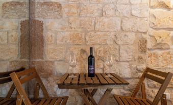 The rooms themselves are absolutely lovely with stone walls inside and out. The only thing I didn't love is that the bathroom walls are a bit translucent but it's a preference. Note that you need to climb stairs to get to the rooms.