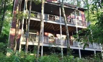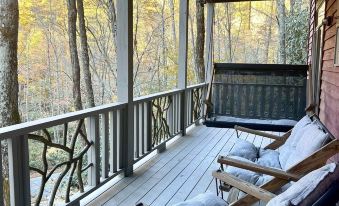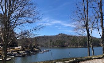 North Carolina Mountain home in Cashiers/Glenville/Highlands area, nestled in trees, with Cedar Creek view & gated access to Lake Glenville, a few minute's walk from our home!