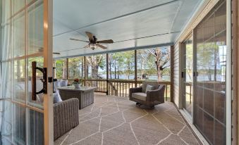 Enjoy a peaceful stay at this 3-bedroom house in Sparta. The superbly decorated bedrooms feature a king bed, queen bed, bunk bed (with double and twin bed), ensuring a pleasant night's sleep for all guests. With 2 1/2 bathrooms everyone can freshen up in comfort. Then, enjoy the view of the lake from the porch, fire pit or dock. Kickback, relax, and enjoy everything Lake Sinclair and our restful house has to offer.Shoes are recommended while on the dock to protect your feet from wood and nails.About pets:Pets allowed: limit 2 total.About checkOut:Check out before 11:00 AM.About children:Children allowed: ages 0-17.About customRules:No jumping off the dock. Shallow water.About checkIn:Check in after 4:00 PM.About smoking:Smoking is not permitted.About minBookingAge:Minimum age to rent: 25.About events:No events allowed.