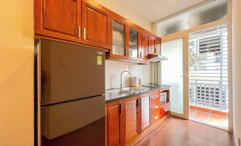 一室一廳一個廁所 有陽台 有洗衣機 有廚房 這個價格 很滿意 非常推薦 下次去河內還住這裏 哦對了 200米有7-11便利店 附近有咖啡廳 這個酒店很安全 進大門需要按密碼 進房間有自己的鑰匙 老闆的熱情 和客氣 雖然老闆不會説中文 但很細心的教要怎麼開酒店的大門的樓上的門 價格一個晚上也不到200人民幣 棒棒噠!