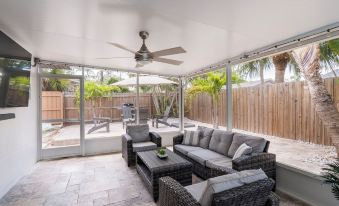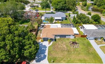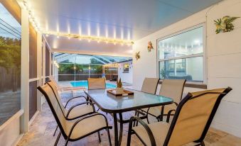 It is completely renovated and newly furnished featuring 3 bedrooms, 2 bathrooms, Florida room and a captivating outdoor oasis. Step outside onto private patio, where you will find the ultimate entertainment area. Immerse yourself in the sparkling private screened and heated pool and hot tub, perfect for those hot sunny days and those memorable poolside gatherings. The outdoor space is an entertainer's delight, providing ample room for grilling, dining al fresco, watching big screen TV (75") or simply enjoying the tranquil atmosphere. 92ft wide lot provides guests with extra privacy in the outdoor space.