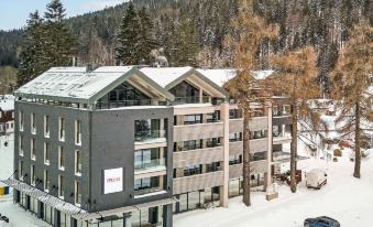 Moderne Residenz. 500 m vom Zentrum von Harrachov, ruhige, sonnige Lage, 600 m vom Waldrand, 600 m vom Skigebiet. Lebensmittelgeschäft, Restaurant 70 m, Bushaltestelle "Harrachov, aut. Nádr." 300 m, Bahnstation "Harrachov" 3.5 km, Freibad 2 km, Thermalbad "Thermy Cieplickie PL" 30 km. Golfplatz (9 Loch) 4.5 km, Tennis 2 km, Tennishalle 2 km, Minigolf, Sessellift, Skipisten, Skiverleih, Skischule, Kinderskischule 600 m, Langlaufloipe 100 m. Nahe gelegene Sehenswürdigkeiten: Expozice Šindelka 400 m, Hornické muzeum 1 km, Mumlavský vodopád, Bobová dráha 1.7 km, Kořenov 8 km, Jizerka 15 km, Jablonec nad Nisou 29 km, Termy Cieplickie (PL) 30 km, Liberec 35 km, Ještěd 40 km. Bekannte Skigebiete sind gut erreichbar: Harrachov 600 m, Zákoutí 2 km, Rýžoviště 3 km, Příchovice 10 km, Rokytnice nad Jizerou 15 km. Wandergebiete: Western City Karpacz(Pl) 40 km, Park miniatury Kowary44km,Karpacz (Pl) 39 km, Giganteria Piechowice(Pl) 23 km.