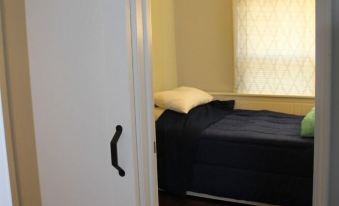 This cozy bungalow can sleep up to six. However, it would be a very tight fit with that many people since it is a small 800 square foot bungalow. 2 bedrooms have queen beds. The third bedroom offers a small desk/work space and a daybed that converts to a queen size bed. There is not a closet in the third bedroom.