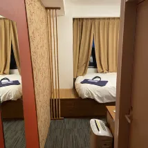 Es ist 10 Minuten vom Bahnhof Himeji entfernt, aber in der Nähe der Burg Himeji. Sie können auf das Dach im 7. Stock gehen, um die Burg Himeji zu besichtigen. Die unterirdische Lobby ist klein, das Personal spricht durchschnittliches Englisch und auf dem Boden stehen Getränkeautomaten. Obwohl das Zimmer klein ist, gibt es unter dem Bett einen großen Schrank, in dem Gepäck aufbewahrt werden kann. Die Toilette ist dürftig, klein und hat einen seltsamen Geruch