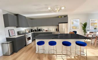 Our fully equipped chef’s kitchen provides modern convenience, perfect for hosting or enjoying a quiet meal or fine dining.