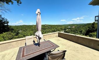 Your "Amazing Retreat" overlooks beautiful, Historic Downtown Hollister and Turkey Creek. This home is truly one of a kind. Just minutes to all the Branson attracts or...you may just never want to leave! Relax on the deck enjoying your morning coffee watching the sunrise. Your family will love the space...open floor plan, majestic views, charming wood burning fireplace, three separate bedrooms and two living areas, New kitchen with everything you would need to cook a meal (or just fix snacks!) The main level has Living, dining and a large primary bedroom with king bed and main floor bathroom right next to the master. Downstairs has two inviting bedrooms each with a queen bed. The third bedroom has a queen loft bed and adjoining gathering/tv area. Come be our guest! *Please note this property does has stairs.About pets:No pets allowed.About checkOut:Check out before 10:00 AM.About children:Children allowed: ages 0-17.About checkIn:Check in after 4:00 PM.About smoking:Smoking allowed: in designated areas.About minBookingAge:Minimum age to rent: 24.About events:No events allowed.