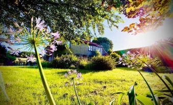 There is a beautiful south-facing breakfast room, with an original feature fireplace, enjoying peaceful views of the mature garden and surrounding flower beds, bursting with honeysuckle, lavender and dahlias in the summer months. With ample seating at a scandi-styled table with benches and luxurious seat covers, this is a prefect spot to enjoy a tasty breakfast before setting off for a coastal adventure!