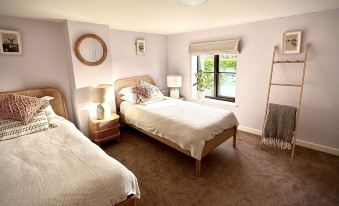 The final bedroom is elevated as part of the extension, with peaceful triple aspect garden views and blackout blinds. This room is extremely spacious and allows room for 2 full sized single zed beds and perfect for a family of four if required.