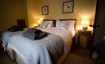 The master bedroom has a king sized bed and ensuite bathroom with walk in shower and view out across the fields and local bowling green. Of the 2 further bedrooms, there is 1 twin, and 1 bedroom with zip and link beds which can be configured as a twin or super king.