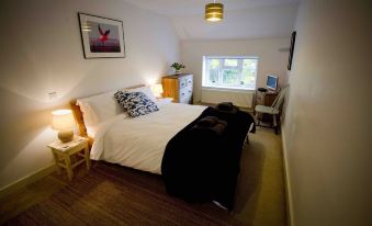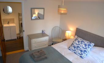 There is one bedroom downstairs with a king sized bed. There is a downstairs bathroom which can be accessed off the hallway or the bedroom. Both doors have locks so it can be made into an ensuite.