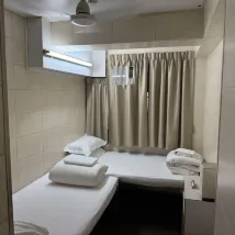 Antwort der Unterkunft: Hello, The room you booked is a single bed room with shared bathroom - All single beds in guesthouses are the same size. We also upgraded your room to a private bathroom. I'm not sure why this low of a review with everything you said with shower/ac is all good. The price you booked at you won't even find in Hong Kong. Do you not understand Hong Kong is expensive?