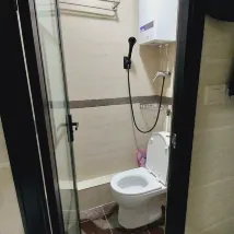 Es handelt sich lediglich um einen Schlaf-, Toiletten- und Duschbereich. Es gibt keine Möglichkeit, sich umzudrehen. Kleidung, Handtücher und Toilettenpapier müssen vor der Badezimmertür abgelegt werden, sonst werden sie nass. Es ist im Grunde eine indische Gegend, und die Eisentür des Gebäudes wird nach 23 Uhr geschlossen.
