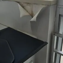 Die nächste Aufnahme zeigte, dass das Wasser aus der Dusche nicht abfloss. Eine herausgerissene Steckdose neben der Spüle
