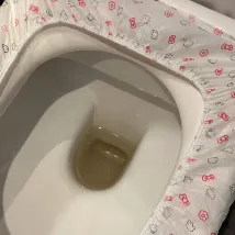 Als ich mir die Zähne putzen wollte, nahm ich den Becher in die Hand und sah, dass direkt Urin herauskam, zusammen mit unbekannten Haaren und Schmutz. Einzelheiten finden Sie in Abbildung 1.