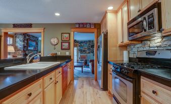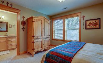 This gorgeous 3 bedroom, 3 2-½ bathroom Hood River vacation rental condo will charm you with its eclectic décor from around the world. The first floor includes an inviting living room with rustic stone fireplace, a dining room to gather and enjoy the magnificent meals you can prepare in the updated kitchen with bar seating.