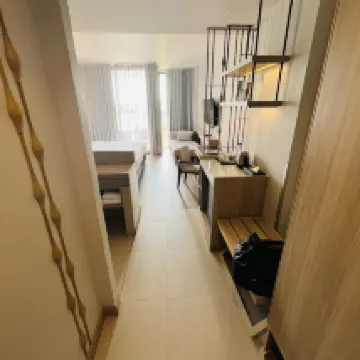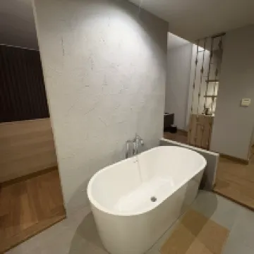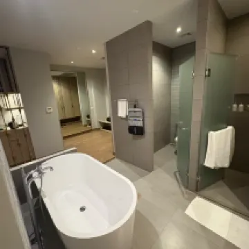 Gutes Servicepersonal Das Zimmer ist größer als erwartet. Großes Bett, großes Badezimmer, Whirlpool-Badewanne funktioniert gut und es gibt Schaumpulver zur Verwendung. Es besteht die Möglichkeit, den Service erneut zu nutzen.