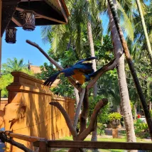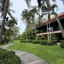 Das Resort ist im Lanna-Thai-Stil gehalten und erinnert an ein historisches Erbe. In der Lobby ertönt ein „Willkommen Hallo“ von einem Papagei. Das Personal auf dem Vorderdeck ist freundlich und gastfreundlich. Es ist eine gute Wahl, hier zu übernachten, wenn Sie der geschäftigen Stadt entfliehen möchten. Im Resort gibt es einen Privatstrand, tropische Pflanzen und Schwimmbäder. Das Frühstück ist gut, mein Zimmer mit Gartenblick ist geräumig, ich hatte eine tolle Nacht im Anantara Hua Hin Resort.