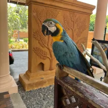 An der Rezeption gibt es einen Papagei, der ist süß.