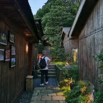 Antwort der Unterkunft: 感恩善待與信任。踏着青石板的台階,有一條曲徑通幽的小路,曙光裏映入眼簾,推開木門,管家在鬱鬱葱葱的樹林間隙露出親切的笑容,回家的感覺撲面而來。一棟棟錯落有致的竹木小屋掩映在松林中,清風拂面,有花開,有雲動,正是應了那句“林空風有韻,影靜月無塵。”登黃山的旅行,沒有既定景點,每日睡到自然醒,去哪裡視心情而定,輕鬆地散步,品嚐徽菜,和外國語旅行者“尬聊”,幫助大家走峽谷,,在毫無目標的隨心所欲中發現小小驚喜……應該這才是一次真正的旅行。緣起再會。