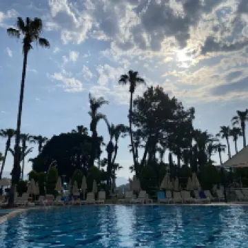 Die Anlage ist wunderschön. Alles ist sehr nah beieinander. Das Hotel ist perfekt gelegen. Der Strand Bereich ist super. Zimmer sind renovierungsbedürftig, aber sauber. Generell könnte die Anlage renoviert werden. Der Aufzug ist öfter ausgefallen. Das Essen war im Vergleich zu anderen Hotels in der Türkei nicht gut. Es war genießbar, aber da gibt es definitiv andere Hotels, wo das Essen deutlich besser ist z.B. mehr Auswahl, mehr Abwechslung und einfach leckerer. Das Hotel hat ein Personalproblem. Man hat sich schlecht gefühlt, das Personal anzusprechen und eine Bestellung aufzugeben, da sie so viel zu tun hatten. Die meisten waren sehr höflich und nett, trotz des Stresses. Einigen hat man angesehen, dass sie genervt sind von der Arbeit. Zum Beispiel hat uns die Frau beim Gözleme Stand (war übrigens super lecker) immer genervt angeguckt, wenn wir Gözleme für die ganze Familie bestellt haben. Wir waren zu 6 - ja ist Arbeit und kann dann auch mal dauern, aber stattdessen wurde uns gesagt, dass sie uns drei Stück macht und wir es uns untereinander aufteilen sollen. Geht gar nicht. Manchmal hat sie es dann garnicht gemacht oder erst gewartet bis alle anderen, die nach uns kamen, fertig sind. Wäre mehr Personal da, wäre das natürlich was anderes. Die Liegen waren um 7 Uhr morgens bereits am Pool überall reserviert von den Briten. Der Pool ist viel zu klein, für die Menge an Menschen. Am Pool kam man garnicht zur Ruhe, weil es so laut und überfüllt war.