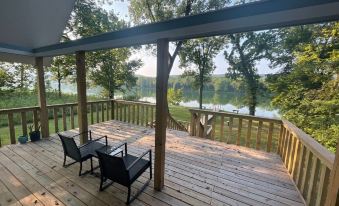 Let your worries fade away while you stay in our tiny luxury cabin, perfect for couples or small families. Sip your morning coffee on the spacious deck that overlooks the White River or grab a fishing pole and head down to the dock. Our beautiful cabin is nestled along the river and has amazing views of the Ozark Mountains. The cabin features large windows and french doors that let the light in from every angle and provides amazing views from almost all parts of the house. Please note that there is a steep hill just prior to entering the property. About pets:No pets allowed.About checkOut:Check out before 11:00 AM.About children:Children allowed: ages 3-17.About customRules:NO FIRES !!! THE WOODS AND FIELDS ARE USUALLY DRY AND WAY TO CLOSE..NO INSIDE PETS,PLEASE REMOVE ALL TRASH AND FOOD FROM HOME BEFORE CHECKING OUT.About checkIn:Check in after 4:00 PM.About smoking:Smoking is not permitted.About minBookingAge:Minimum age to rent: 25.About events:Events allowed: family gatherings, birthday parties, weddings.Maximum event attendees: 4.