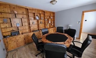 It has a large living room with lots of room for a large group as well we have a bonus games room with a poker table and board games.