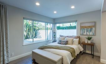 Settle into a space that actually feels like home. This ground-floor studio with a full kitchen and expansive backyard is designed for longer stays—a cozy, stylish sanctuary all your own. Whip up meals in the thoughtfully stocked kitchen, where everything’s just where you need it. Enjoy the backyard oasis for work-from-home breaks, sun-soaked mornings, or evening relaxation. Thoughtfully curated for comfort and style, this is a place to truly unwind—just don’t rearrange too much.About pets:No pets allowed.About checkOut:Check out before 11:00 AM.About children:Adults only.About customRules:Ring Stickup Camera outside the home and cameras in common areas of the Apartment Complex..Do not have more guests than stated in your reservation.