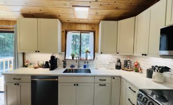 • Kitchen is fully stocked with appliances, cookware, silverware, basic condiments, keurig coffee & tea