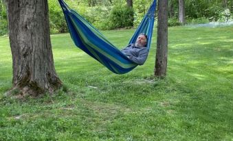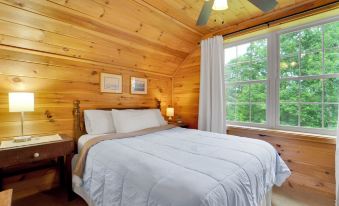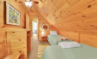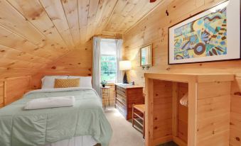 Dining room has window day bed that is a great place to read a book or an afternoon nap! Large kitchen with everything you need. First floor master bedroom with king bed and large windows for pleasent breezes! Full bathroom with shower. Upstairs are two bedrooms and a half bath. All this is on 5 acres overlooking a pond. Beautiful trails for a nice walk to enjoy nature! Come feel the zen!