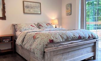 This newly renovated, beautiful home has 4 bedrooms, 3 custom bathrooms, AC, and an indoor hot tub. It's also dog friendly! It's a great place for a getaway in Vermont, located less than 5 miles from Jay Peak Ski Resort. It's also close to mountain biking and hiking trails, as well as waterfalls. The house can sleep 8-10 people, making it perfect for families, groups, couples, and wedding-goers. The home is bright, clean, and surrounded by Vermont nature. It sits on an acre of land with manicured gardens. It has all the comforts you need for a great getaway, including air conditioning, heated floors in the bathrooms, and a soaking tub. The house is owned by a local couple and their 4 children who rent it out to support their mountain life. The home is designed to be relaxing and stress-free, with a private driveway and plenty of space for parking. When you arrive, you'll see a large covered porch and a spacious entrance with hooks and storage space for your gear.