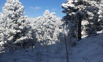 Convenient store(s) just 5 min down the hill. Despite the convenient location, the 2.5 acre wooded lot looks and feels secluded. Full covered patio and porch swing allows for relaxing views of snow-covered peaks I was the continental divide . A shuffleboard court and dart board also in place for those wanting some home-based fun when not out enjoying the beautiful front range.