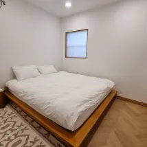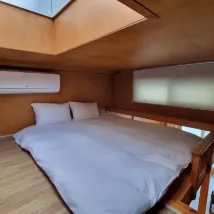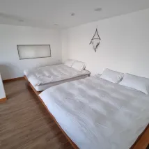 복 2층에 침실이 있는데 층고는 살짝 낮지만 깨끗하고 편안한 침구에서 편히 쉴 수 있었다
