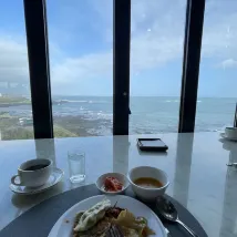 Loved the location, its a bit out but was able to walk to some food in about 20 and Had the haenyeo Museum opened I would have walk to it. I Pune a great chicken place the museum. Being away from stuff gives you an uninterrupted view. The staff gave a ride to the bus stop!