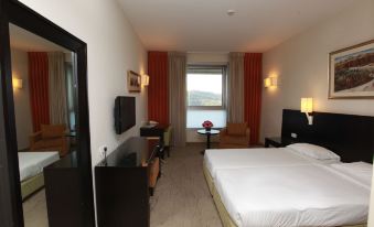 One never expects to be hosted well when accompanying a loved family member during his extended hospital stay. This little gem is located within the campus of the Hadassah Ein Kerem Hospital. The staff is welcoming, the sleep is sound, the meals are perhaps in the range of "typical plus" and the kashruth is impeccable It well served our needs. Plus, the view of the surrounding hills from the panorama dining room is a treat of its own.