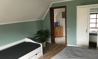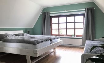 Start your journey of discovery directly from the Eulenhof on foot or by bike through the Alte Land!Since the Black Route is a side street, the house is very quiet. The property is 2600sqm in size. The apartment is located on the first floor and is 63sqm in size. It is not handicapped accessible and is a Non smoking apartment. All windows are equipped with insect screens. A parking space is available.