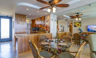 A boardwalk starts just outside the Mahana, and ends at the Hyatt Regency – about 3 miles away. It goes through Whalers Village in the heart of Ka'anapali Beach. On this walkway, there are parks, water activity rental kiosks, and restaurants, so driving isn't a necessity for a myriad of activities. The restaurant 'Duke's Beach Grill' is just next door - a few minutes walking distance - serving breakfast, lunch and dinner with ocean front views!