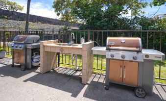 One of the highlights of our retreat is its prime location. Situated right on Alii Drive, you'll have easy access to a wide range of activities and attractions. The famous King Kamehameha Beach and various local stores are just a short walk away, allowing you to explore the area on foot. If you prefer to cook your meals, our fully-equipped kitchen has everything you need. And when it's time to relax or enjoy a meal outdoors, you can take advantage of the barbecue area by the pool.