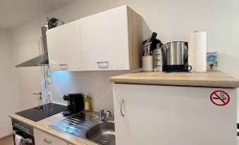 Der nächstgelegene Flughafen ist Flughafen Karlsruhe/Baden-Baden, der etwa 45 Minuten mit dem Auto von der Unterkunft entfernt (47,3 km) ist.Wie komme ich von dem nächstgelegenen Flughafen zu Kleines Glück Karlsruhe - washing machine, underfloor heating?