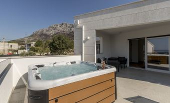 The Villa "Meri" is a 1100 m² property in a quiet suburb of Split. The city center, Diocletian's Palace and the beautiful town of Trogir are a 10-minute drive away. Kastel Sucurac is one of seven castles, first in the direction of Split towards Trogir. It is located in the town of Kastela. The settlement is located on the coast of Kastela Bay. In Kastel Sucurac there is the oldest tower of Kastela, which was built in 1392 by Archbishop Andrija Benzi of Split (Gualdo) to protect the peasants of the village Putalj on the slopes of Kozjak around the church Sv. George. With a series of additional interventions, the tower became a seaside settlement.