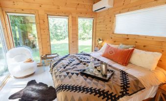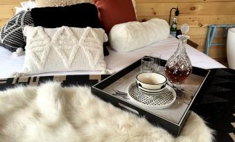 Located in the heart of the Adirondacks in Keene New York, the juniper hills cottage is remote and nestled next to a private lodge. A small bungalow style cabin with an open setting and mini kitchen, comes with a king memory foam bed, plush sheets, Pendleton robes, a soak freestanding tub, sheepskin rugs and local charcuterie upon arrival. Step outside to a mini fireplace, sauna or hot tub, and cedar outdoor shower ( summer months) after a long hike or ski, wine selections or pasta dinner available for add on charge. Your back yard space is private, and the cabin itself is near a lodge but remains quiet and not shared as well.