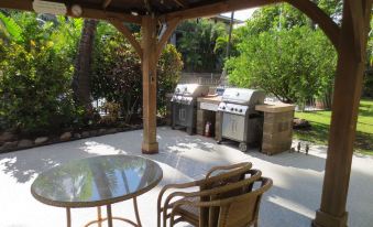 Our Condo sleeps two persons with a queen size bed in the bedroom and a queen sofa bed in the living room. The private Lanai overlooks the tropical gardens. the front of the condo gives access to a court yard full of Hawaiian plants and flowers with a swimming pool in the middle. Gas BBQ are located next to the pool. Parking for one car is free.