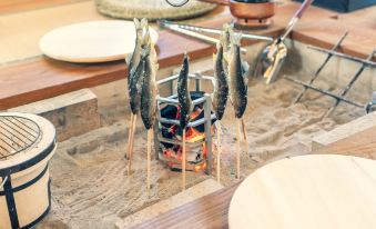 You can grill sweetfish with salt, enjoy drinks, and spend a pleasant time chatting with family or friends while waiting for the food to cook slowly.
