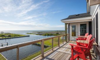 Equipped with and elevator and beautiful furnishings and modern amenities, you'll love the panoramic views of the Pamlico Sound. Best of all, the island is so narrow that you can see the beach from our balcony. It's a short quarter mile walk or bike ride or pack your coolers and chairs and park at one of the many public access areas or get your 4WD permit and drive on the beach.