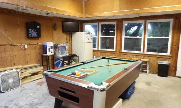 There is off street parking for 6+ cars. A detached garage serves as a pool room and bar, complete with flat screen tv, casual sitting, pool table, and bathroom. This means you can have tons of fun without worrying about waking anyone up!