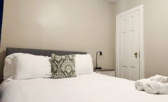 Restful Bedrooms: Drift into a peaceful slumber in our plush beds adorned with crisp, white linens and a selection of pillows for your comfort. Wake up rejuvenated, ready to explore or work.