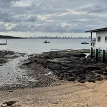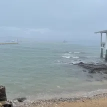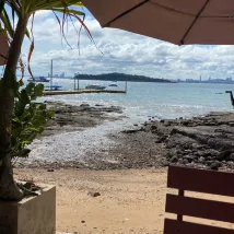 Das Frühstück ist für den Preis in Ordnung: Rührei, Würstchen, Gemüse, Tee, Instantkaffee, Porridge, Toast und Obst. Ich habe es sehr genossen, draußen mit Blick aufs Wasser zu frühstücken.